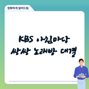 KBS 아침마당 프로그램은 다양한 코너로 구성되어 있는데, 그중에서도 '쌍쌍 노래방 대결'은 단연 단연 인기 있는 코너입니다. 이 코너에서는 출연자들이 2인 1팀으로 노래 실력을 겨루게 되는데, 노래방 기계가 점수를 매기게 됩니다. 80점 이상을 받으면 좋은 점수로 평가되죠.