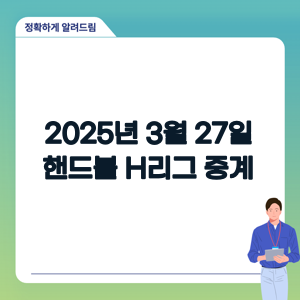 2025년 3월 27일 핸드볼 H리그 충남도청 vs 두산 경기는 어디서 실시간으로 볼 수 있나요?